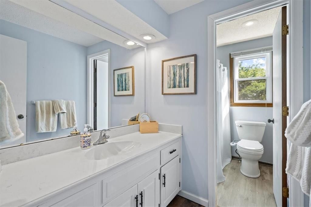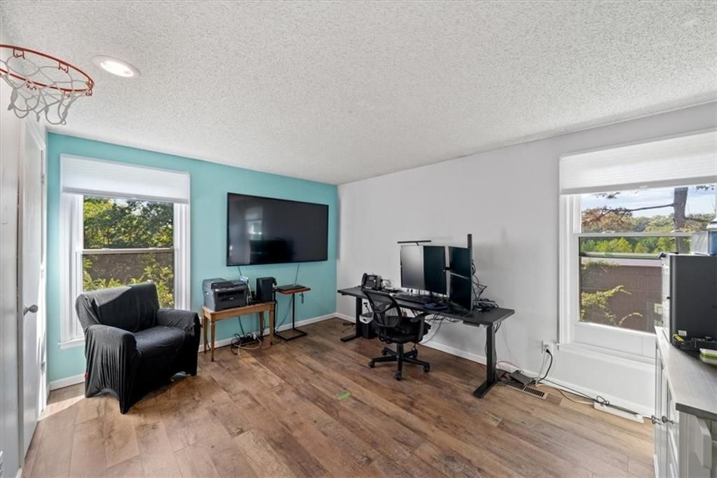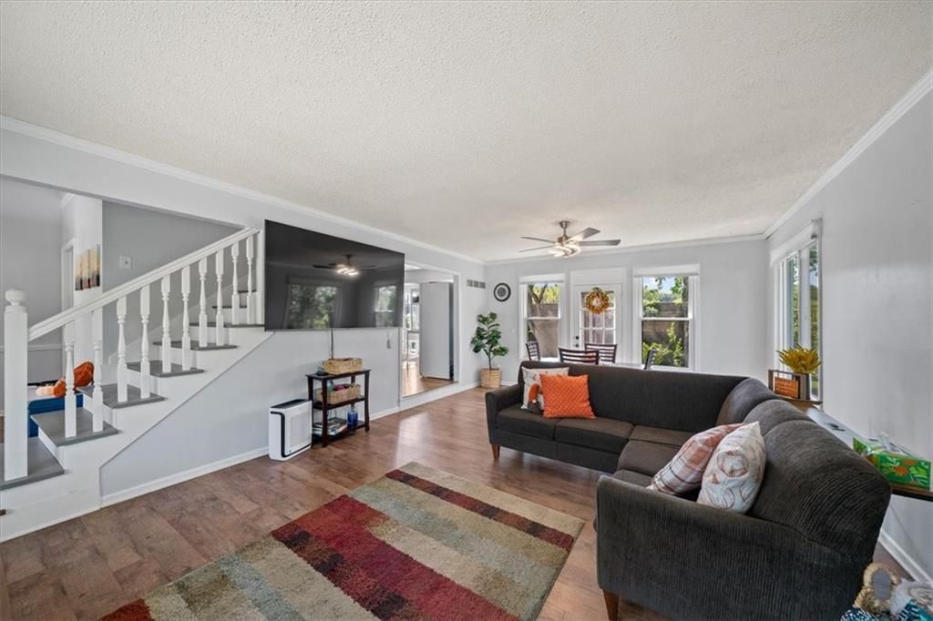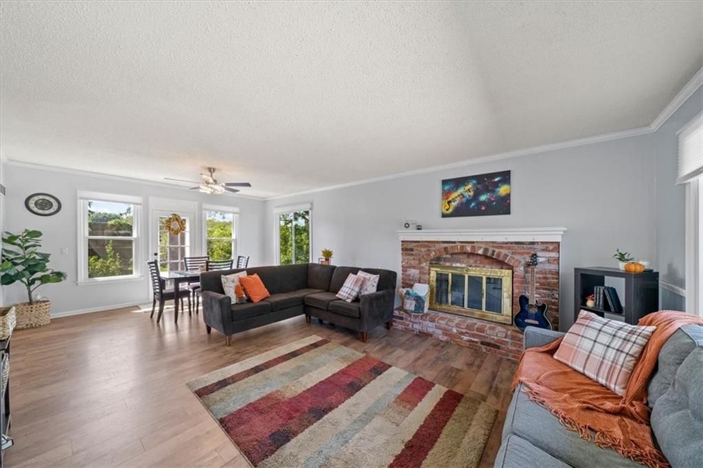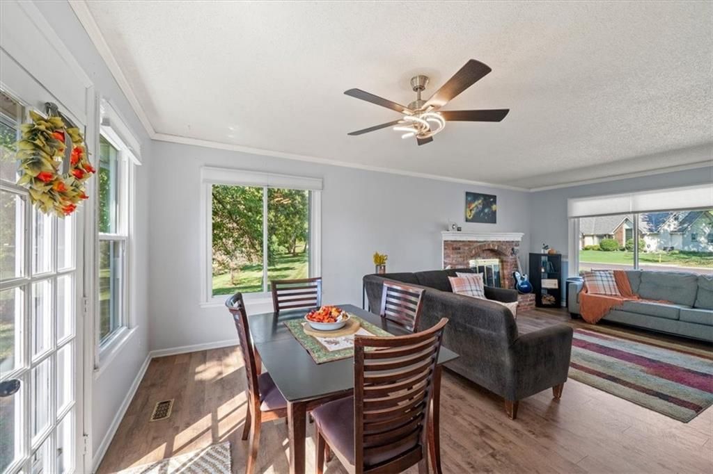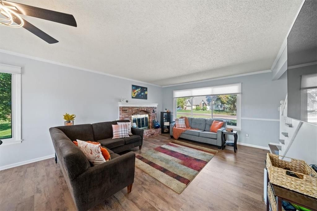 Welcome to Oak Park Manor. This 1.5-story home offers an excellent opportunity to build equity in one of Overland Park's most convenient locations. The home sits adjacent to the neighborhood micro-park, soon to feature new playground equipment, providing a wonderful outdoor extension for play and relaxation. Inside, you'll find a spacious family room with all new windows, a brick fireplace, and an open layout that flows into the generous sized kitchen - perfect for entertaining. The kitchen provides abundant counter space, cabinetry, and room to gather. The main level also features the primary suite with two large closets, a full bath, and a versatile bonus room ideal for an office, nursery, or sitting area (also has it's own closet and could easily serve as a true 4th bedroom). The floor plan offers true functionality with main-floor laundry, a double side-entry garage, and a flat driveway ideal for bikes or basketball. Upstairs are two additional bedrooms and a full bath. The unfinished lower level allows room for future expansion or ample storage. Recent updates include new interior paint, newer roof (approximately 4 years old), and all new windows. Light, bright, and ready for new owners, this home combines comfort and potential in a sought-after setting. This home backs to 435 and there is road noise when approaching the property. Inside the home, noise is significantly reduced due to the new windows, but if traffic noise is a deal breaker, this is likely not the one for you. If we could adjust the location, we certainly would It is priced accordingly and represents a strong value for size, location, and potential. Enjoy easy access to parks, trails, schools, shopping, restaurants, and healthcare, all just minutes away.