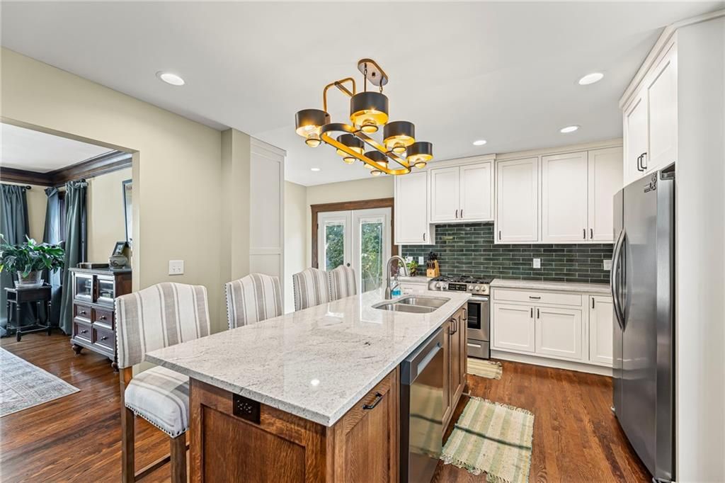 Absolutely stunning, meticulously taken care of Brookside beauty! This home has been stunningly modernized while keeping that Brookside charm people look for. Upon entry, you are greeted with a large entry way that provides plenty of space for an office or play area right off of the living room with the fireplace and built ins. Keep going into the home and the kitchen has went through an entire overhaul and one wall was widened into the formal dining area really opening up the space, but not loosing any of the character. The kitchen has new everything, including island, cabinets with roll outs, a pantry, gas stove, granite, and stainless steel appliances that all stay! The laundry was brought to the main level for added convenience and is tucked away behind the kitchen. Go upstairs by the split staircase that leads to the entry and kitchen. Once upstairs, it is immediately apparent the sellers knew where to upgrade. The primary bedroom has been transformed into a suite with an added full bath that includes double vanity, large shower, and walk in closet. The main bath is across the hall for the three other bedrooms to share. Outside, enjoy the peaceful street on the covered front porch where the sellers sit most evenings, or off the kitchen you will see the new composite deck, updated wood privacy fence and access to your TWO CAR garage with newer poured shared driveway leading to it. This home really requires you to walk through it twice to notice all of the features. The sellers have done an astonishing job updating while maintaining what makes Brookside so special.