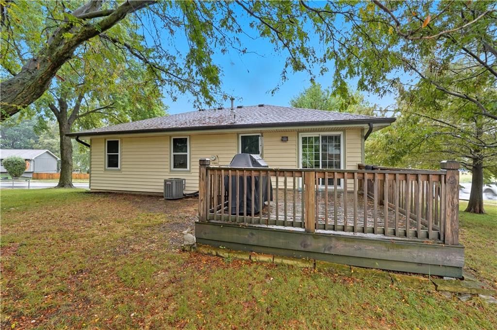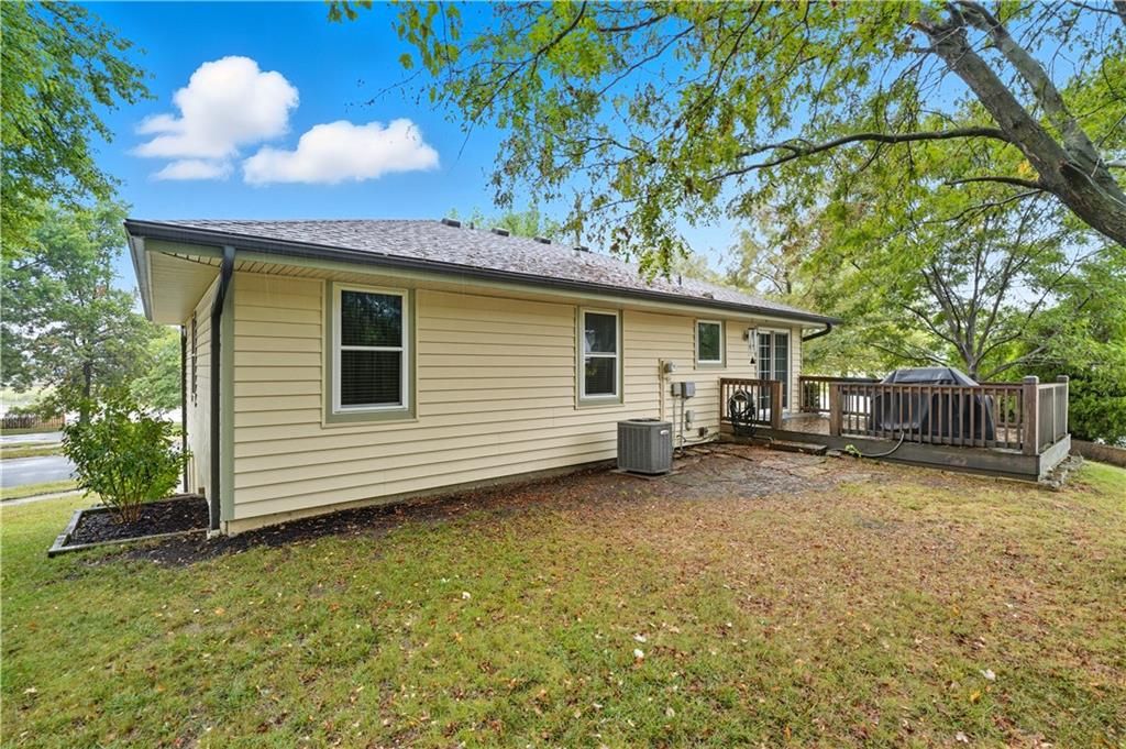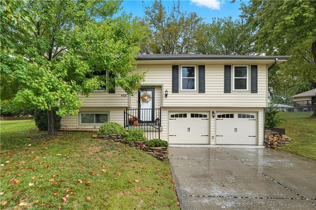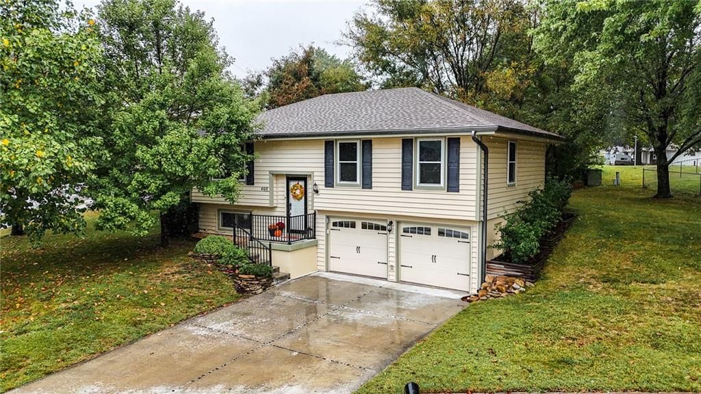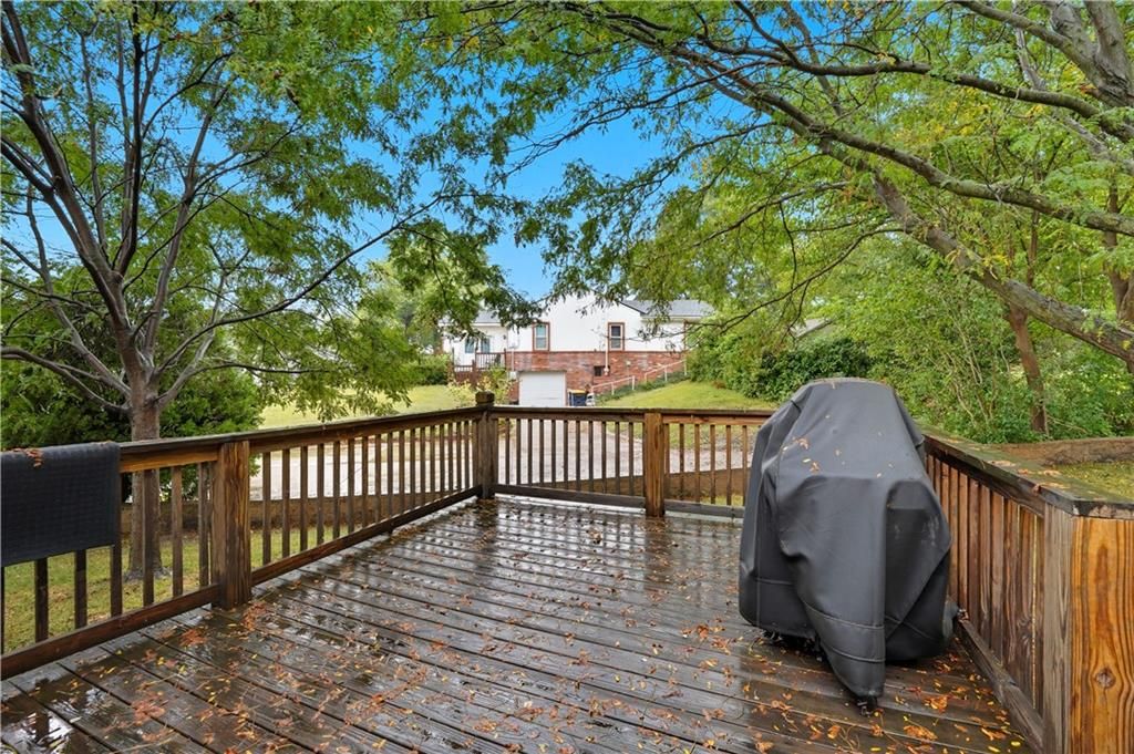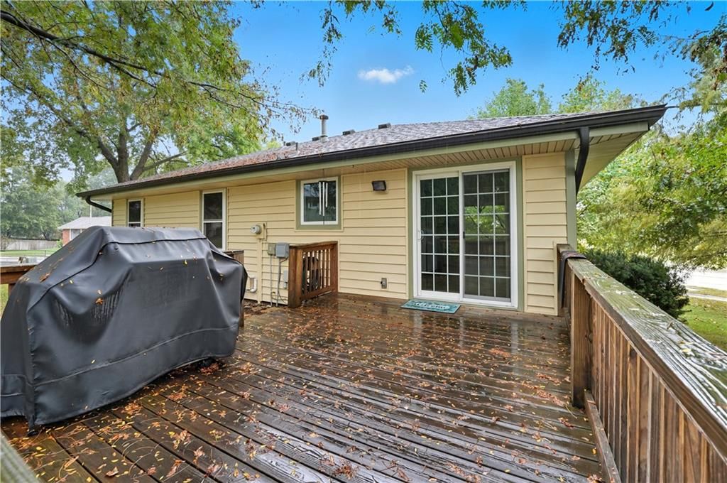 Maintenance-free vinyl siding and a level driveway welcome you to this move-in ready home! Enjoy a treed yard and wood deck perfect for outdoor living. Inside, the main floor features an open entry, living and dining rooms with beautiful wood floors, plus two updated baths showcasing stunning tile showers with glass doors. The newly finished lower level offers a full bath and walk-in closet - ideal for a guest suite, home office, or additional living space. Excellent location near schools, shopping, and freeways, just minutes from downtown and KCI Airport.