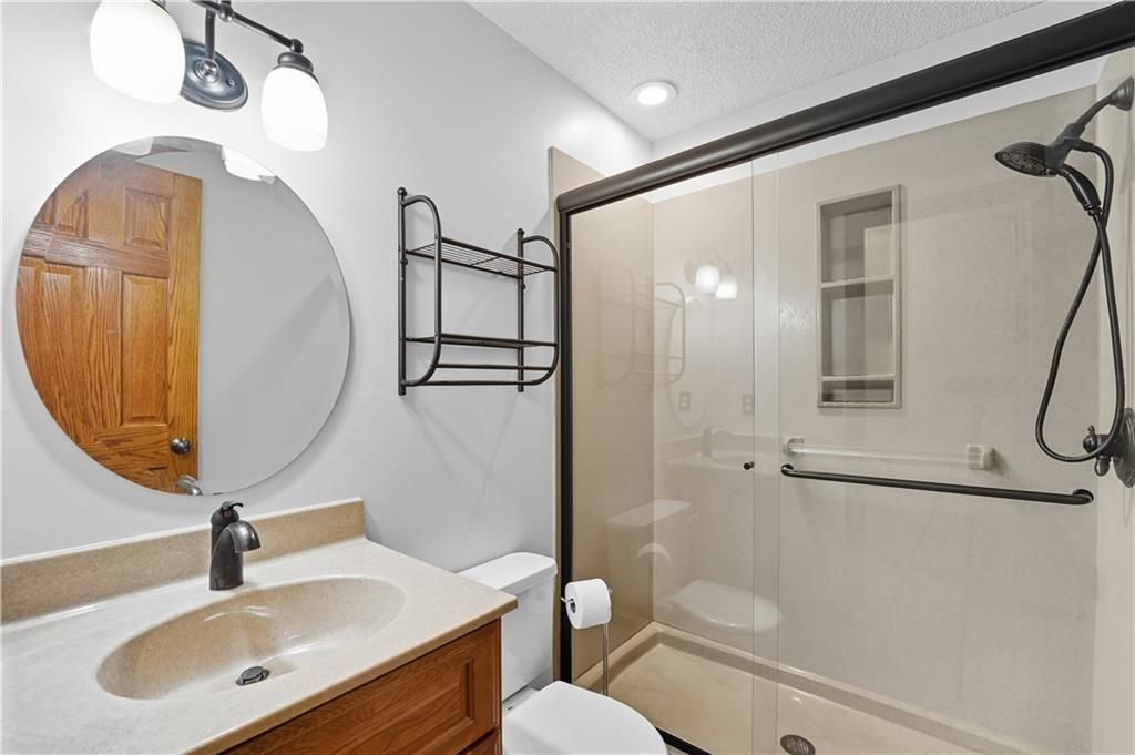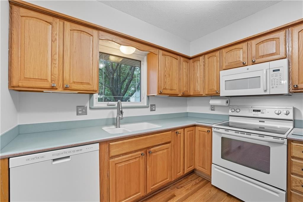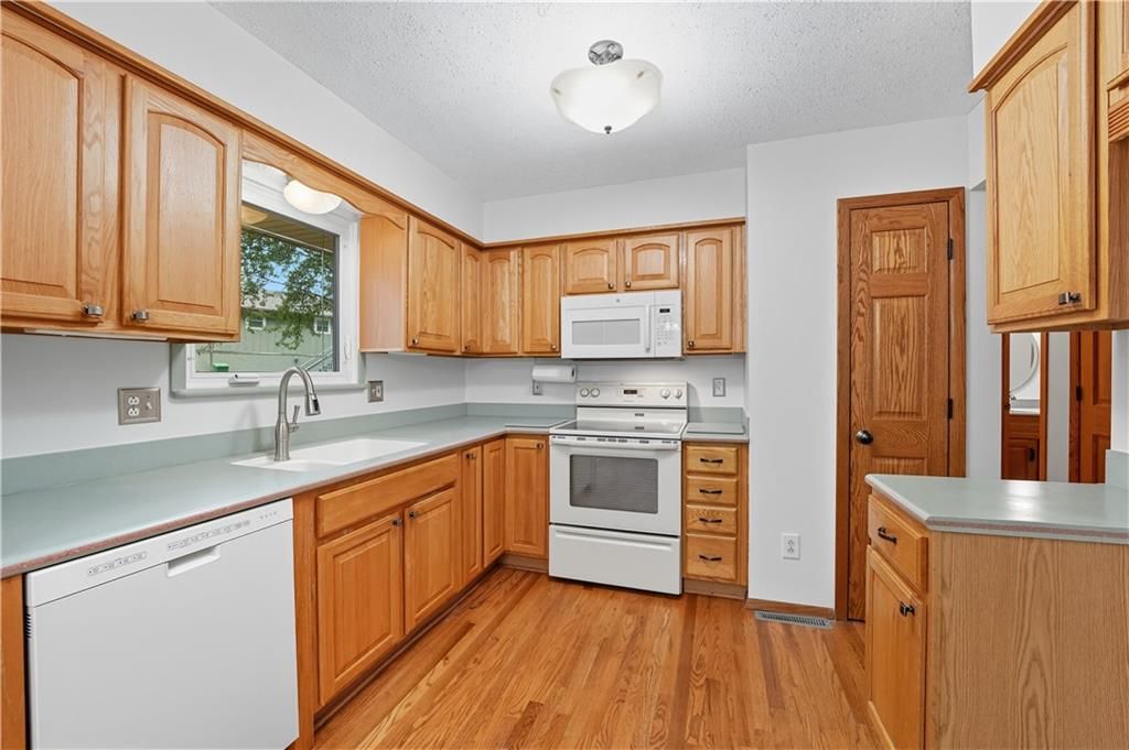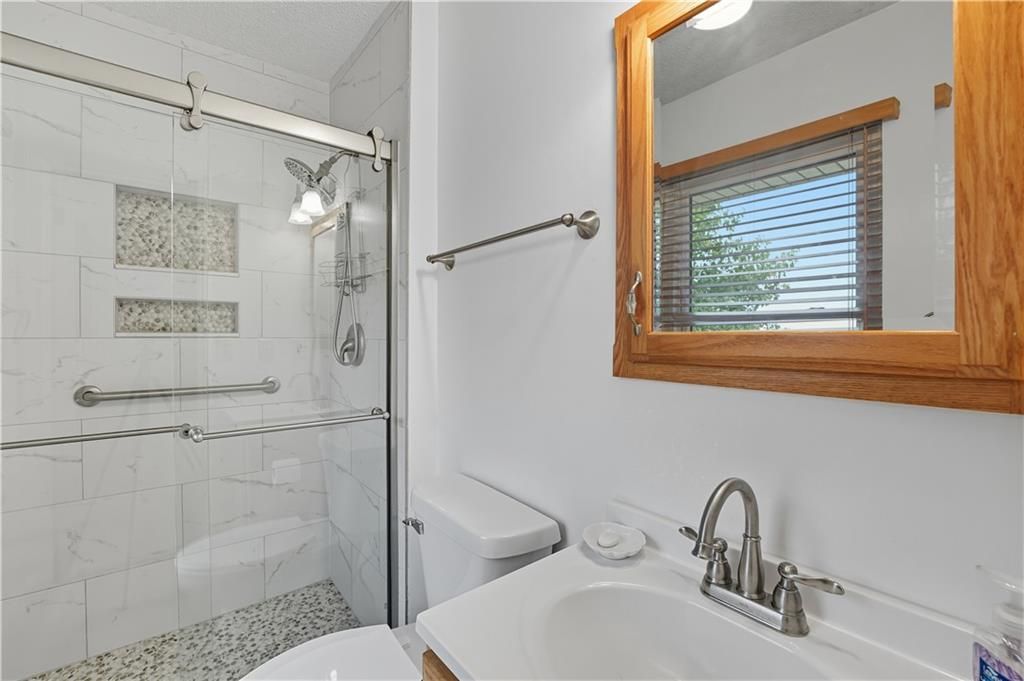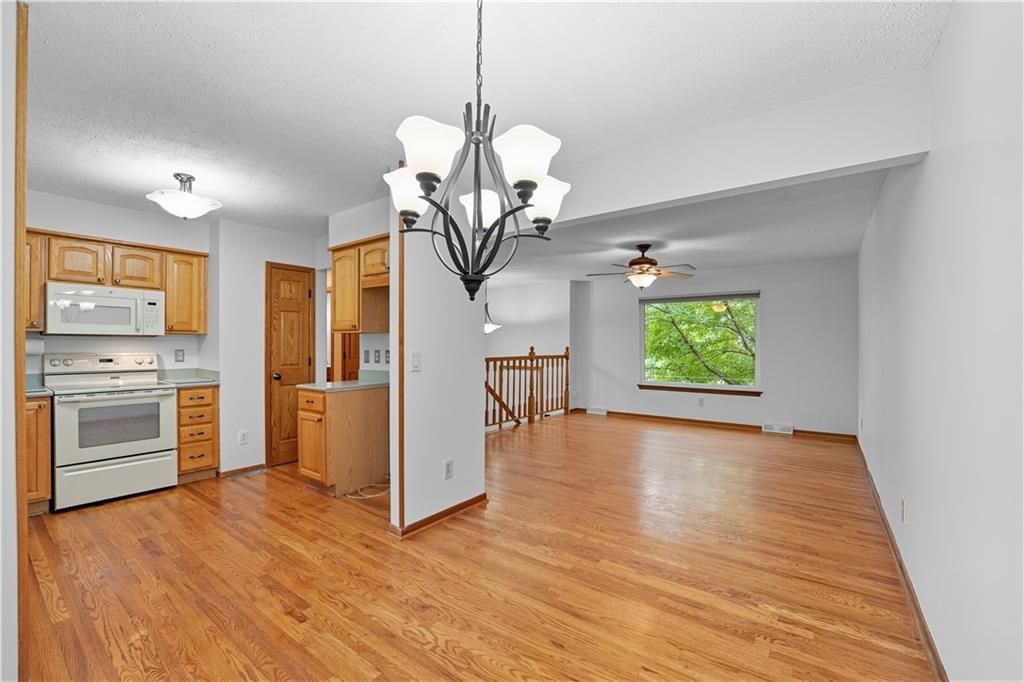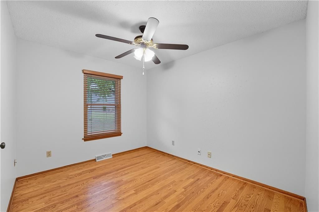 Maintenance-free vinyl siding and a level driveway welcome you to this move-in ready home! Enjoy a treed yard and wood deck perfect for outdoor living. Inside, the main floor features an open entry, living and dining rooms with beautiful wood floors, plus two updated baths showcasing stunning tile showers with glass doors. The newly finished lower level offers a full bath and walk-in closet - ideal for a guest suite, home office, or additional living space. Excellent location near schools, shopping, and freeways, just minutes from downtown and KCI Airport.