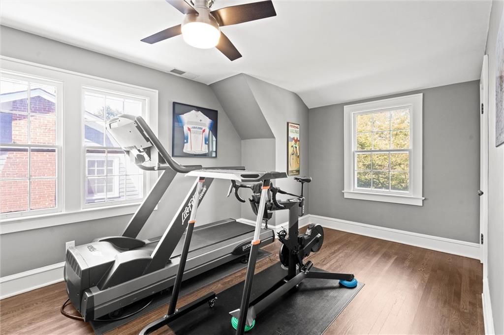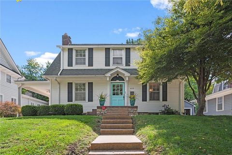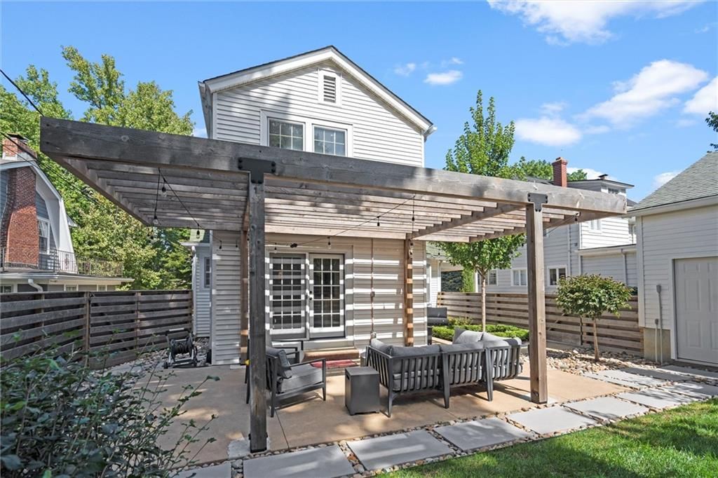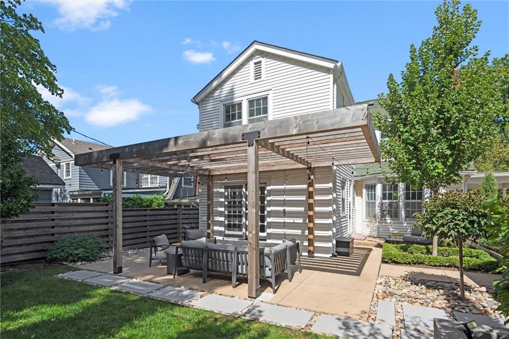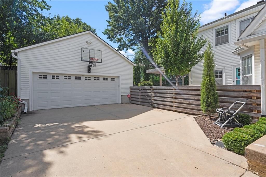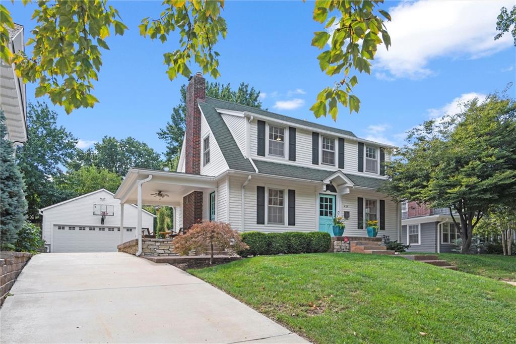 GREAT LAYOUT IN THE HEART OF BROOKSIDE! This updated 2 story colonial is a TRUE 4 BEDROOM HOME with a newer OVERSIZED 2 CAR GARAGE! Kitchen is updated and expanded to include a den area off the back. Kitchen includes custom cabinets, granite countertops, a coffee bar area, pantry, stainless steel appliances and peninsula with seating. MAIN LEVEL LAUNDRY located off the kitchen. Formal living room is spacious and leads to covered side porch. All 4 bedrooms on 2nd floor. Every bedroom is generous in size. Primary bedroom is it's own "wing" of the home with floor to ceiling built-in closet space. Primary full bathroom has zero entry shower. Full bathroom in hallway with shower over tub and newer floor tile + vanity. BONUS 200+ sq ft workout room in basement! Backyard has over $60k in upgrades including all new hardscaping, professional landscaping, new Pergola, sprinkler system in front and backyard plus new wood privacy fence! All accessible electrical has been updated including including new panel in 2017. NEW Zoned HVAC in 2024! Plus short distance to downtown Brookside shops. A great house in a fun location!