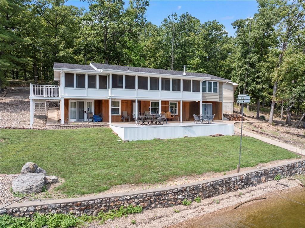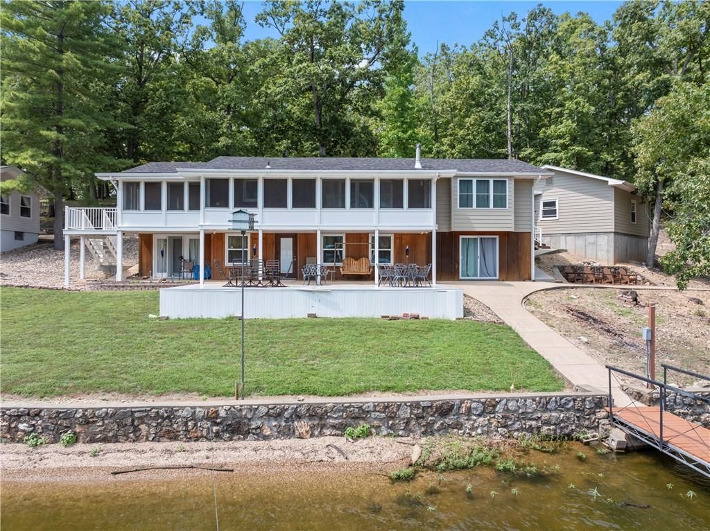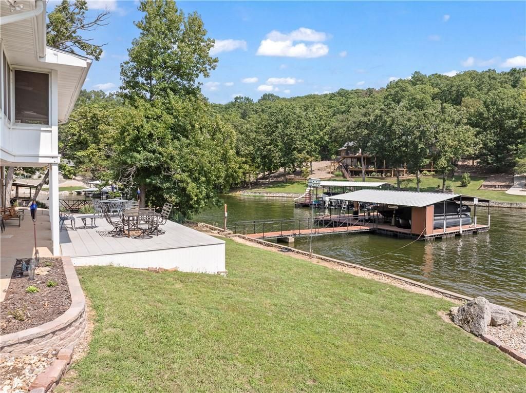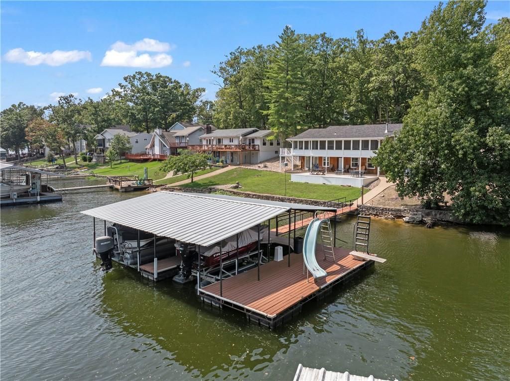 Escape to your own private paradise with this stunning lakefront home, perfectly positioned on expansive acreage that offers both privacy and space to enjoy the great outdoors. Featuring 4 spacious bedrooms and 3 full bathrooms, this thoughtfully designed retreat blends everyday comfort with natural beauty and upscale amenities. Start your mornings on the screened porch or expansive outdoor deck, both offering serene lake views. Spend your afternoons enjoying the water with two private docks, two boat lifts, and two PWC lifts - Nice deep water (15 ' at the back of the dock) ideal for boating, fishing, or simply soaking up the sun. Evenings are best spent by the fire pit or entertaining under the stars. Inside, you'll find a flowing, open layout anchored by a chef's kitchen equipped for serious cooking, and a large dining room perfect for hosting family and friends. The detached 2-car garage adds flexibility with plenty of room for storage, hobbies, or extra vehicles. Whether you're seeking a full-time residence or a weekend lake escape, this rare lakefront gem offers the best of both worlds - luxury living and laid-back lake life, with room to grow, roam, and relax.
