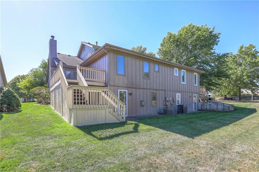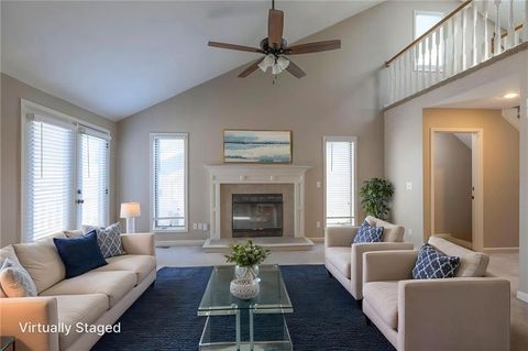 Welcome to this beautifully updated 1.5 story townhome in the sought-after BarryBrooke by the Lake community. Perfect for everyday living or as a smart rental investment. This spacious 3 bedrooms, 3.5 baths has over 2,800 sq. ft. of finished living space offering comfort, versatility, and style. The vaulted living room features skylights, a gas fireplace, and access to a large deck. The kitchen includes abundant cabinetry, tile flooring, and a breakfast counter open to the dining area. The main-floor primary suite offers a walk-in closet, full bath, laundry, access to the attached two car garage and easy main-level living. Upstairs are two spacious bedrooms connected by a large Jack and Jill bath. The finished walkout lower level adds a full bath, wet bar, fireplace, and patio access. Fresh interior paint gives the home a modern look. Enjoy low-maintenance living close to shopping, dining, healthcare, and major highways. Perfect for owner-occupants or investors alike!