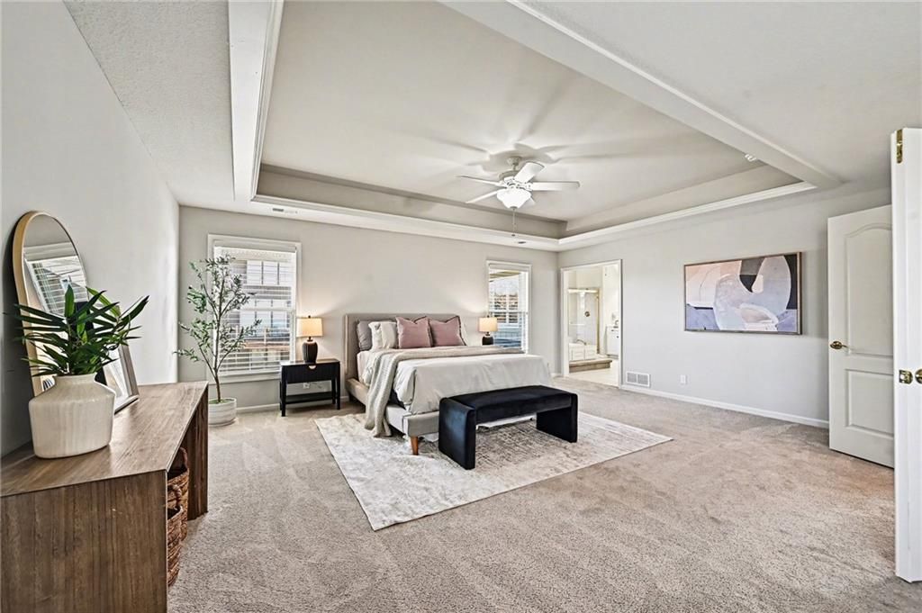 Tucked within a cul-de-sac in The Fairways and neighboring Hodge Park Golf Course, this custom-built residence offers a level of structural investment - including three fireplaces, one within the primary suite - that today's construction costs make difficult to replicate at this price point. Constructed with 2x6 exterior framing, the home reflects a higher standard of structural integrity, supporting improved insulation, long-term efficiency, and durability beyond what production builds in this range typically offer. During the original construction, the garage footprint was expanded by five feet - a decision that simultaneously created an enlarged primary closet designed for organized, functional living. These are structural choices made at the time of the build that cannot be easily replicated after the fact. The walkout lower level spans approximately 1,800 square feet with nine-foot foundation walls, creating volume typically reserved for above-grade living. Already stubbed for both a bathroom and kitchen, the space is well-positioned for multigenerational living, a dedicated entertaining or media room, a home fitness suite, or a substantial future finish tailored to your needs. Positioned within the Staley High School attendance area and minutes from Shoal Creek shops and restaurants, downtown Liberty, and Zona Rosa, the home also offers convenient access to major highways and MCI airport. To support buyer confidence, the seller has completed a professional pre-listing inspection and addressed key items in advance - including new exterior paint, new carpet, and upgraded insulation to R-49 for improved year-round comfort and energy efficiency.