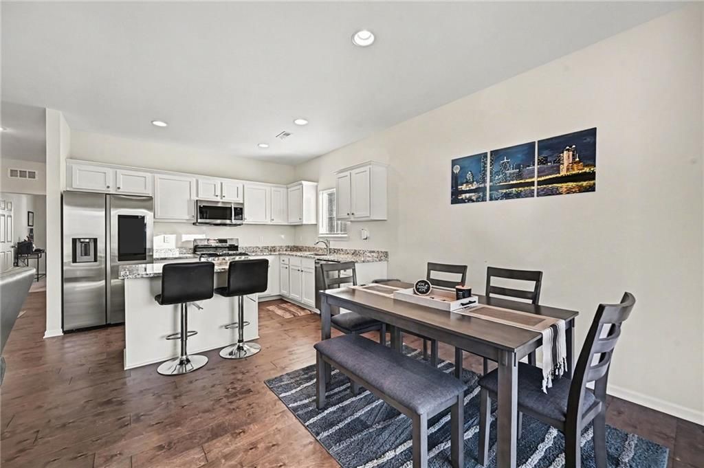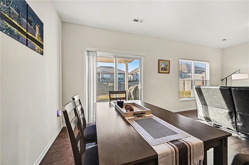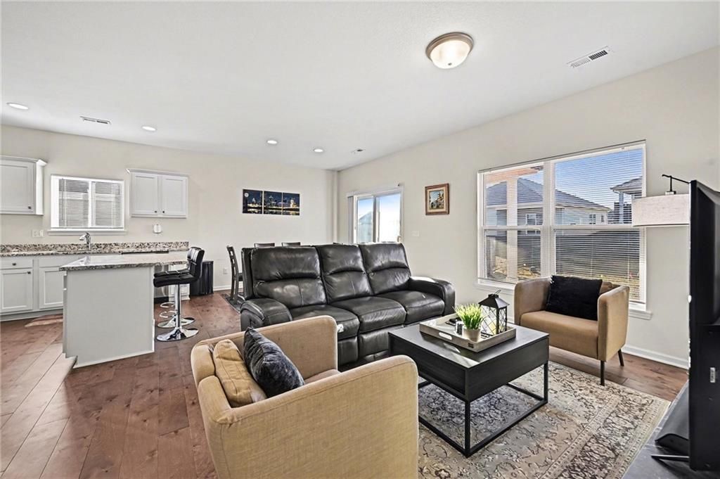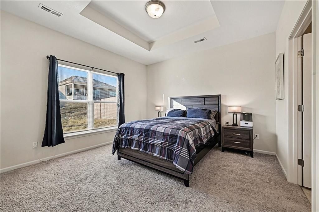 Move-in ready 3 bedroom, 2 bath maintenance provided ranch home. Greeted into an entryway leading to a laundry room, two secondary bedrooms, full bath, and garage entrance on front on the front of home. Main area of home is an open entertaining space with living room, dining space, and kitchen complete with pantry, white cabinetry, granite countertops, kitchen island, stainless steel appliances; microwave, dishwasher, and gas range with 4 burners & gridle. Main living space walks out to a covered patio area and yard space. Primary bedroom hosts a walk-in closet and en-suite with dual vanities and shower. North Creek Village neighborhood HOA: lawn maintenance, snow removal, private sewer, management, trash pickup, club house, exercise room, party room, and swimming pool. Close proximity to highway access and minutes from KCI airport. Platte County School District.