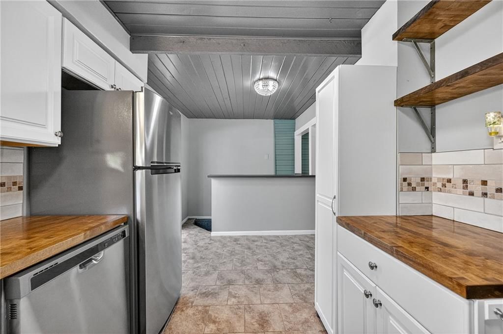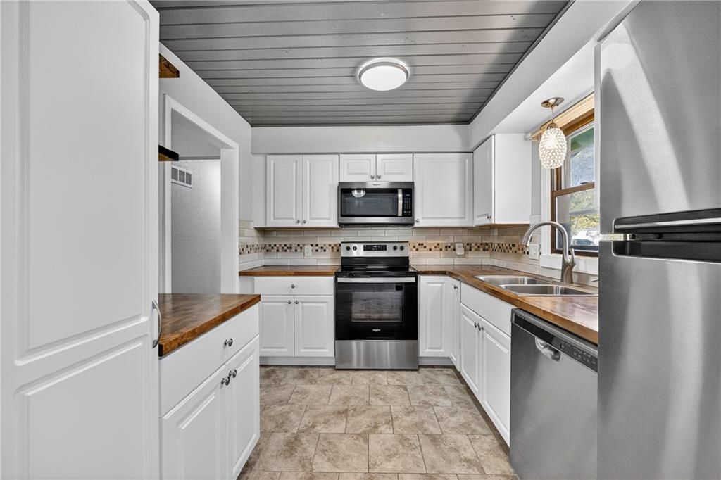 Welcome to this charming raised ranch offering a perfect blend of comfort, style, and privacy. Step inside to find a bright, inviting main level featuring a beautifully updated kitchen with warm butcher block countertops, sleek stainless steel appliances, and an adjoining dining area that opens to a spacious deck with built-in bench seating - ideal for entertaining or relaxing outdoors. This home includes three bedrooms and one and a half baths, providing plenty of space for everyday living. The finished walkout basement offers additional living space perfect for a family room, home office, or gym. Enjoy the convenience of a two-car garage tucked behind the home for added privacy and security. The fully fenced backyard backs to open space with no neighbors behind, creating a peaceful retreat right in the city. With a move-in-ready interior, stylish finishes, and a layout designed for both function and comfort, this home checks every box. All appliances, including the washer and dryer, stay with the property - making it truly turnkey.