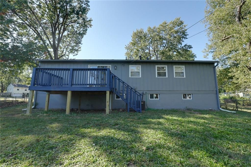 Awesome 3 bed 1 bath Ranch house in south KC close to the highway. House totally remodeled. Hardwood floors throughout most of house. Updated kitchen w/ granite counter tops, newer stainless steel appliances (Stove, microwave & dishwasher). Bathroom is totally remodeled, new vanity, Tile around tub and Luxury vinyl plank floors. All brand new windows. Roof less than 5 years old. Just painted inside and out. New HVAC. 1 car garage w/ new opener. full unfinished basement. Dining room walks out to Huge 14 X 10 deck out back w/ huge fenced in back yard. Ready to move in